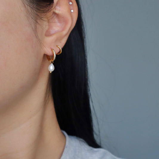 Pendientes Huggie de oro con gota de perla | Elegancia clásica con un toque moderno